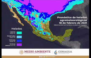 Para el día 20 de febrero, se pronostican heladas y temperaturas mínimas de -15 a -10 grados Celsius en regiones de Chihuahua, Coahuila y Durango; de -10 a -5 grados Celsius de montañas del Estado de México, Guanajuato, Nuevo León, Puebla, Sonora, Tamaulipas y Zacatecas; de -5 a 0 grados Celsius en sierras de Aguascalientes, Baja California, Ciudad de México, Hidalgo, el norte de Jalisco, Michoacán, Querétaro, San Luis Potosí y Tlaxcala, y de 0 a 5 grados Celsius con posibles heladas en zonas montañosas de Morelos, Oaxaca y Veracruz.