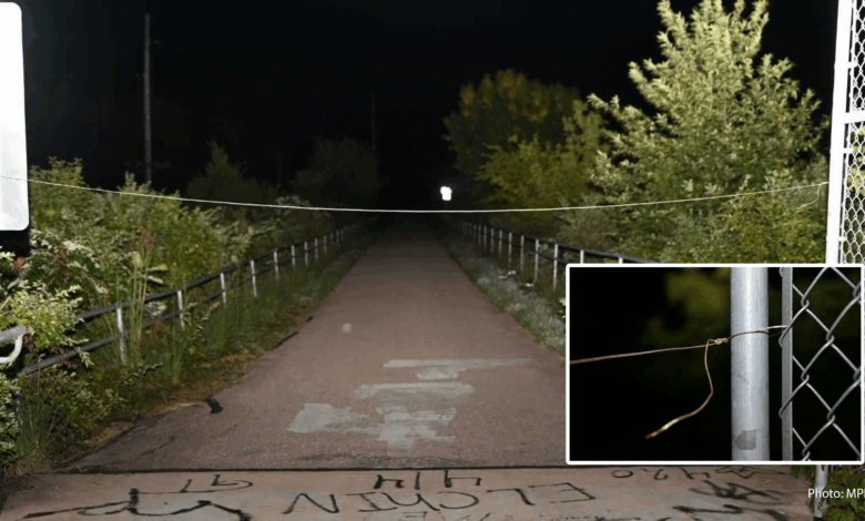 El hombre dijo que el cordón colgaba a la altura del cuello a través del camino. Estaba atado a una valla de eslabones de cadena en el puente que pasa por encima de los caminos de Cannonball y Capitol.