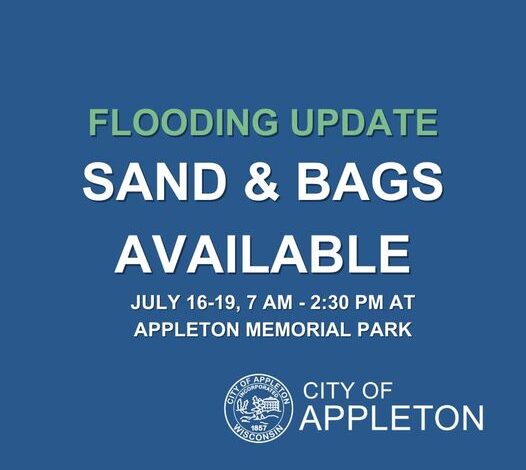Bolsas y arena estará entregando la Ciudad de Appleton en el Memorial Park (1620 E Witzke Blvd, Appleton, WI 54911) desde las 7:00 am a 2:30 pm a partir de hoy y hasta el próximo 19 de julio de 2024 para utilizar como método de contención ante las posibles inundaciones que se presenten en los próximos días.