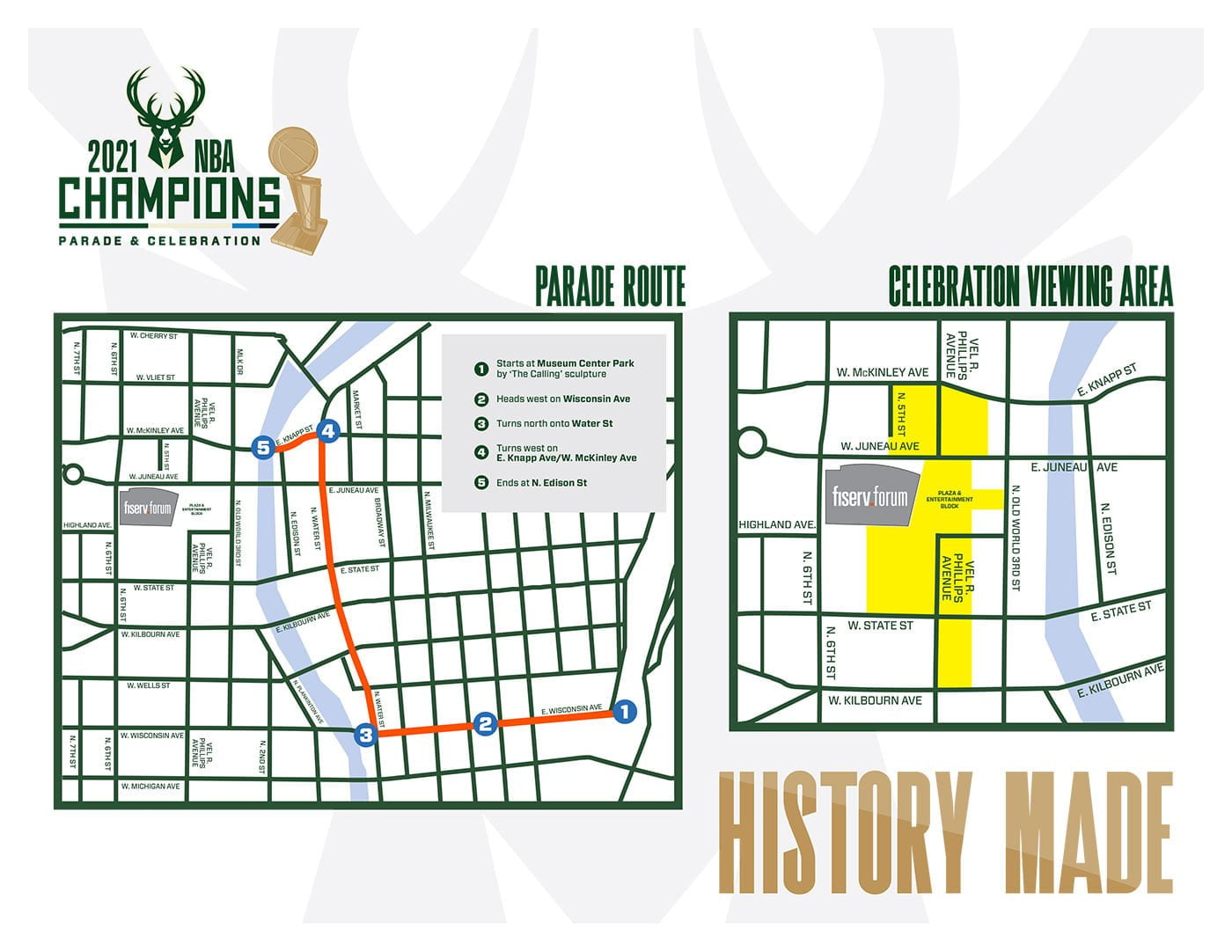 “Esta es una oportunidad fantástica para venir al centro de nuestra ciudad y honrar a los Bucks victoriosos”, dijo el alcalde Tom Barrett. “El equipo ha unido a Milwaukee de una manera especial, haciendo brillar una atención mundial positiva en nuestra comunidad. ¡Este es un momento para celebrar con entusiasmo! “