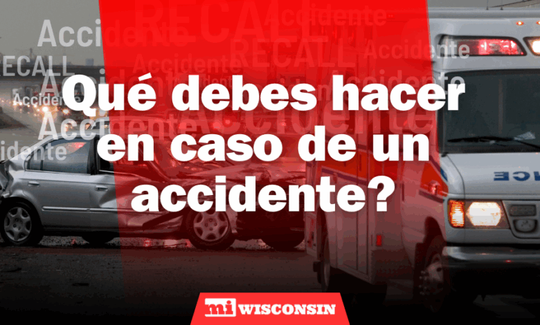 El primer paso urgente es colocarse usted y los demás en un espacio seguro y activar las luces de parqueo, o peligro, de su auto, para alertar a los demás conductores de que existe alguna emergencia. En algunos países latinos las luces intermitentes quieren comunicar que alguien está parqueado, en Estados Unidos son luces de emergencia o peligro. Manténgase en el auto con el cinturón de seguridad abrochado. En lo posible y dependiendo del estado del vehículo muévalo a un lugar seguro fuera del tráfico. Posteriormente revise las heridas suyas y de los demás pasajeros, recolectando toda la información posible. No todas las lesiones son visibles. Asegúrese de preguntar si alguno se siente mareado, esto puede ser algo serio. Ahora a llamar al 911. Si es un golpe menor al auto y no involucra personas heridas usualmente no necesita llamar al 911. En muchos casos los involucrados solo toman fotos de todo los ángulos del accidente, placas y se comparten los datos del seguro del auto y de la licencia. Intente siempre estar calmado cuando llame al 911 para que les pueda compartir toda la información posible y requerida: ¿Cuál es su nombre?; describa brevemente lo que paso y qué esta pasando (Informe el número de heridos, peligros con tráfico y si hay fuego visible); ¿Dónde fue el accidente? (nombre de las calles o intersecciones, en que milla se encuentra (mire los avisos de millas en los highways), dirección como se mueve el tráfico y algunos guías claves para que los servicios de emergencia puedan llegar rápidamente. NO CUELGUE la llamada con el 911 hasta que el despachador le diga que puede hacerlo. Espere por la ayuda. En lo posible manténganse en el auto, con el cinturón abrochado y las puertas aseguradas. Si por alguna razón no puede permanecer dentro del auto, aléjese a un lugar seguro fuera de las vías.