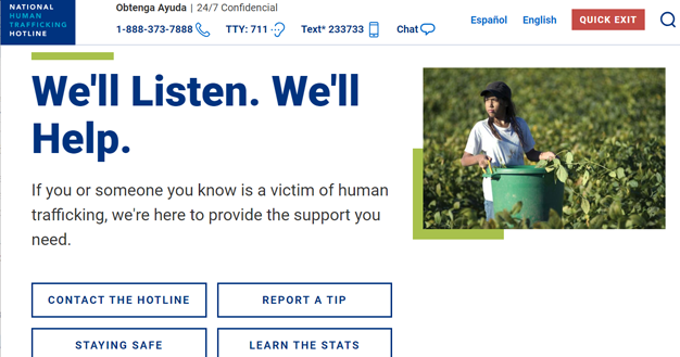 Wisconsin no se libra de ser un escenario en el que se perpetran dichos delitos, la línea directa nacional contra la trata de personas (NHTH) trabaja articuladamente con proveedores de servicios y autoridades para llevar un proceso para responder a los casos y atender a víctimas de trata.