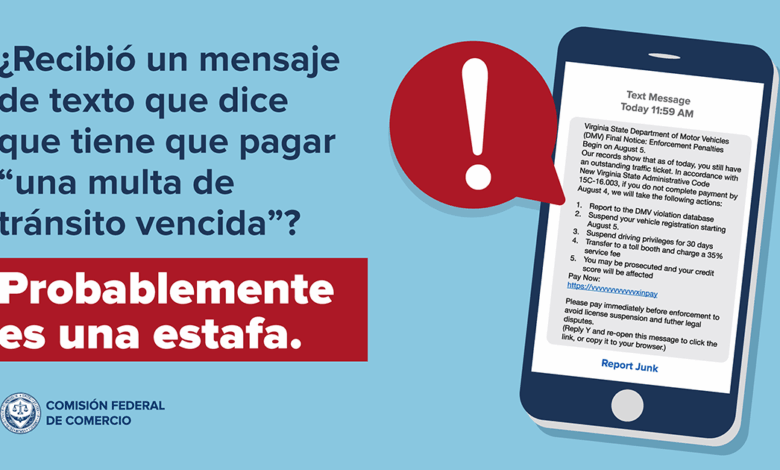 Es probable que hayas recibido un mensaje de texto fraudulento sobre cargos de peaje impagos o conozcas a alguien que lo haya recibido. Ahora los estafadores van aún más lejos y se hacen pasar por el Departamento de Vehículos Motorizados (DMV) de estados de todo el país. Insisten en que pagues una “multa de tránsito vencida” y amenazan con suspender tu derecho a conducir un vehículo (entre otras cosas) si no lo haces. La estafa funciona de la siguiente manera.