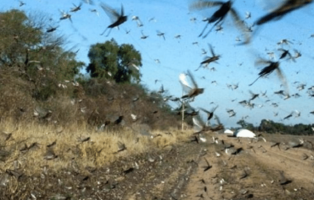 A lo lejos es solo una nube negra, pero de cerca son millones de langosta que viajan de país en…