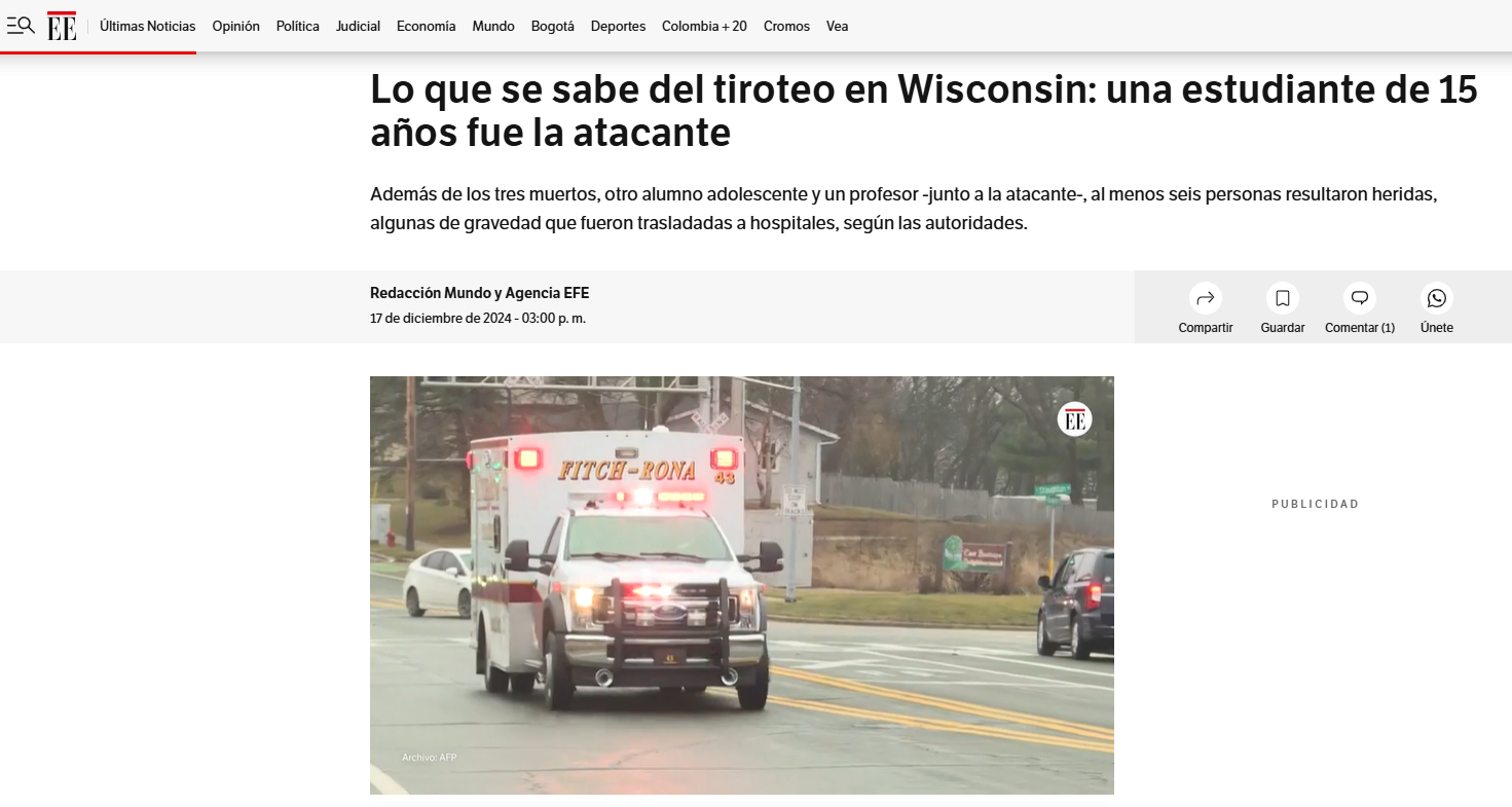 Así presentan la noticia algunos medios de comunicación en este momento, mientras las autoridades continúan investigando el caso: