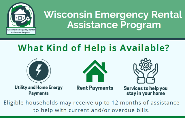 El gobernador Tony Evers anunció que Wisconsin Emergency Rental Assistance Program (WERA) ahora podrá proveer ayuda para pagar los arriendos y los servicios públicos de las familias afectadas por la pandemia y que califican entre los rangos de pobreza. Hasta el momento este programa ha proveído más de $38 millones de dólares a 11.000 familias.