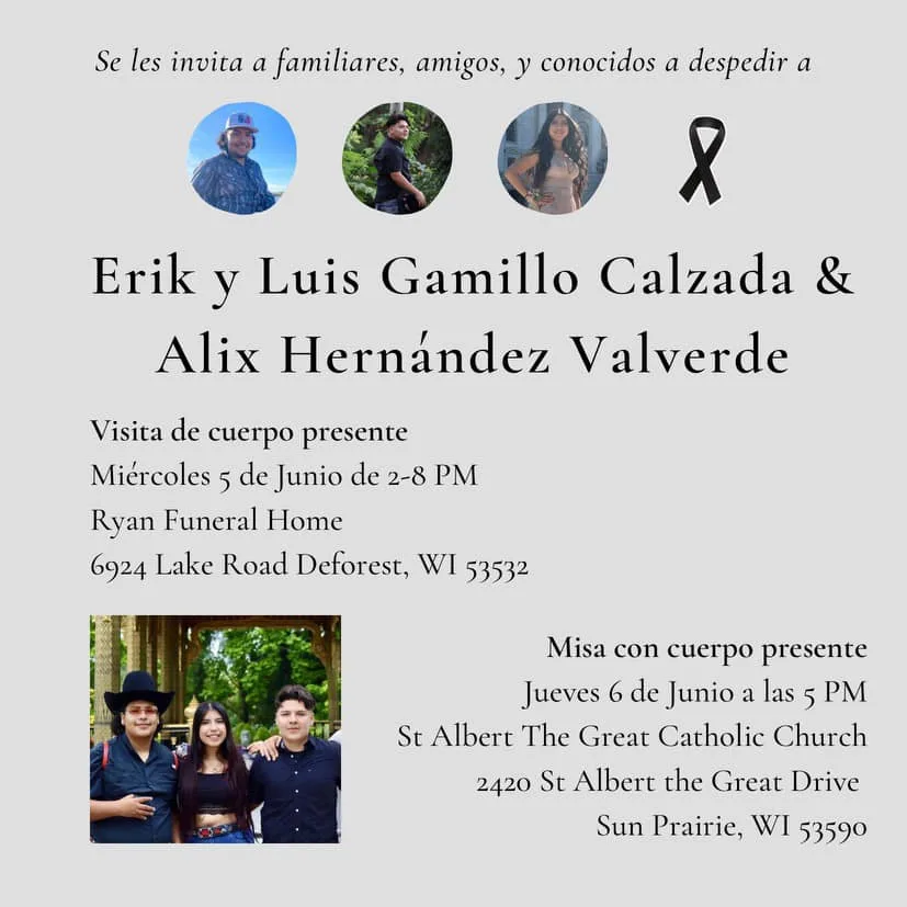 Los servicios funerarios de Luis y Erik Gamillo serán el miércoles de 2:00 – 8:00 pm, en el Ryan Funeral…