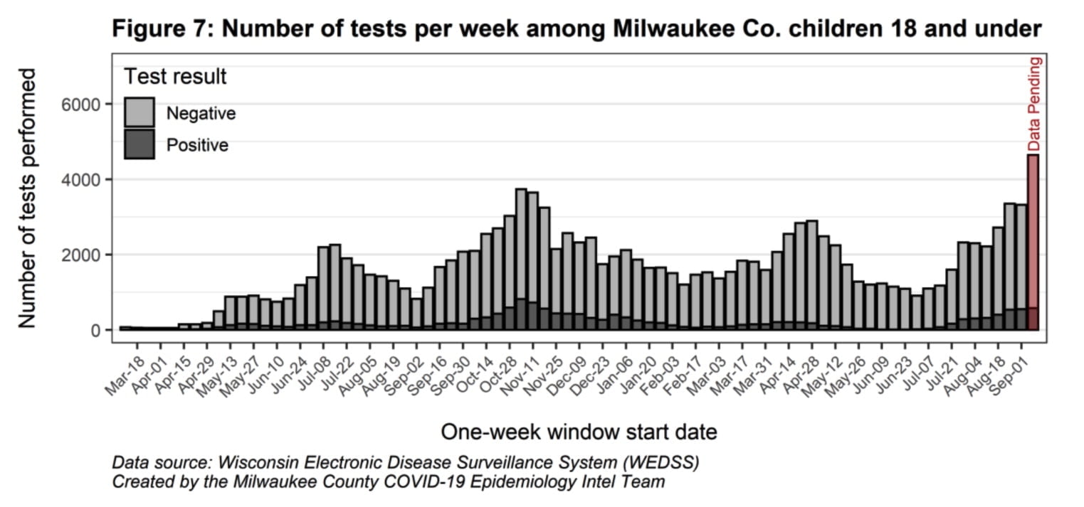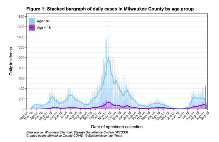 Según los reportes de epidemiología del Milwaukee County COVID-19 Epidemiology Intel Team, realizado entre el 8 y 14 de septiembre, se han detectado 1.480 nuevos casos de COVID-19 comparado con 1.438 de la semana anterior. Estos datos llaman la atención pues 499 infectados son menores de 18 años, muy similares a la semana anterior.