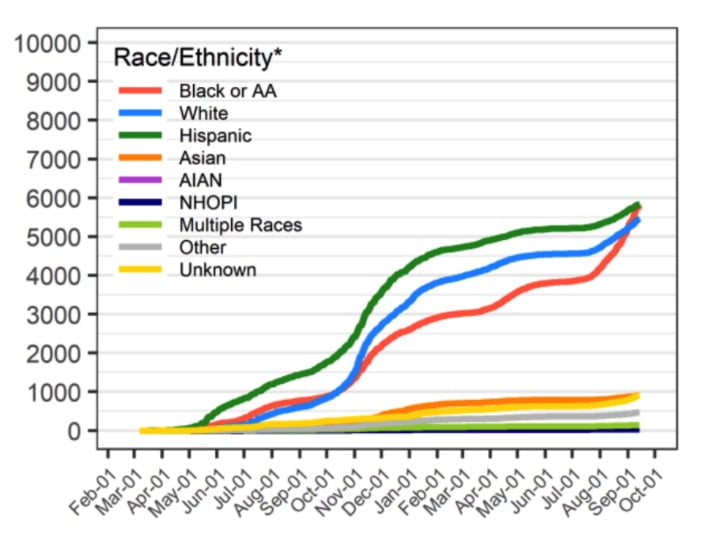 Hasta el 9/17/2021 los datos acumulados para la comunidad hispana/latina eran los siguientes: